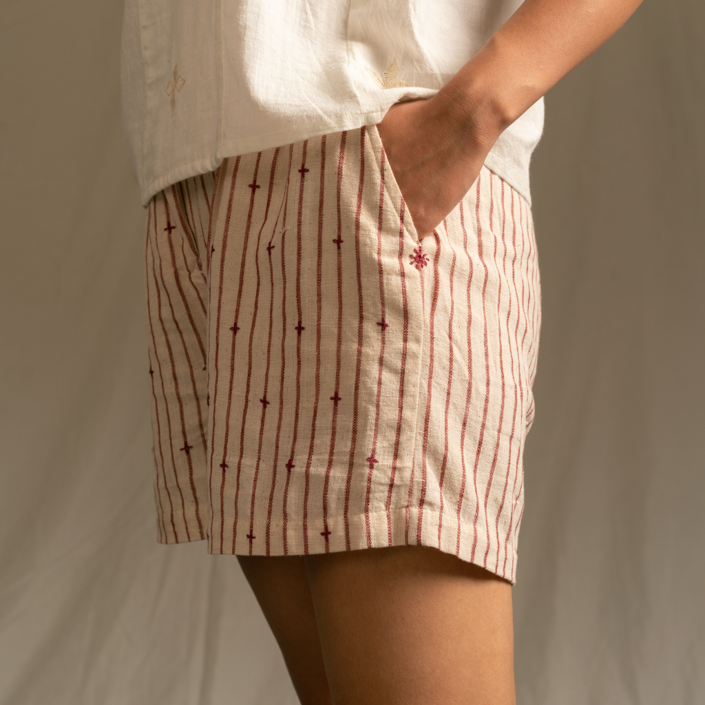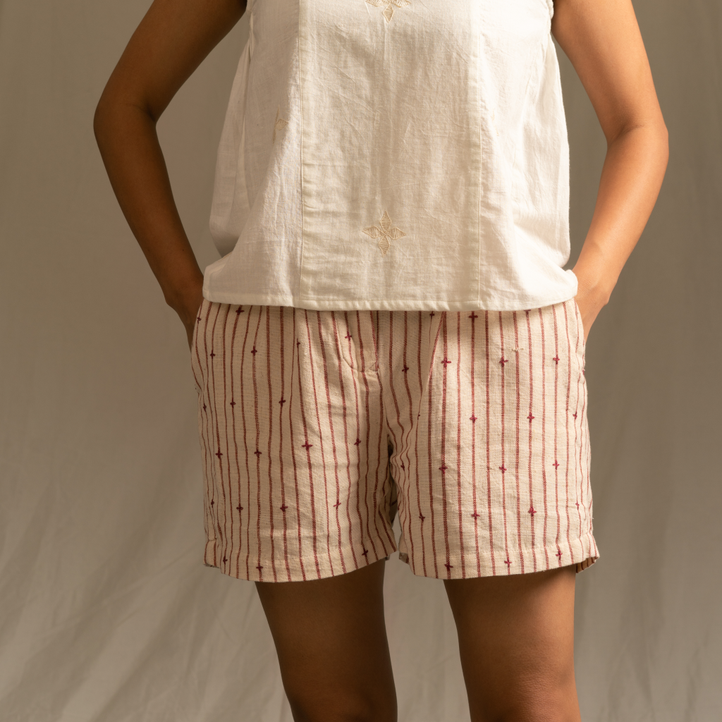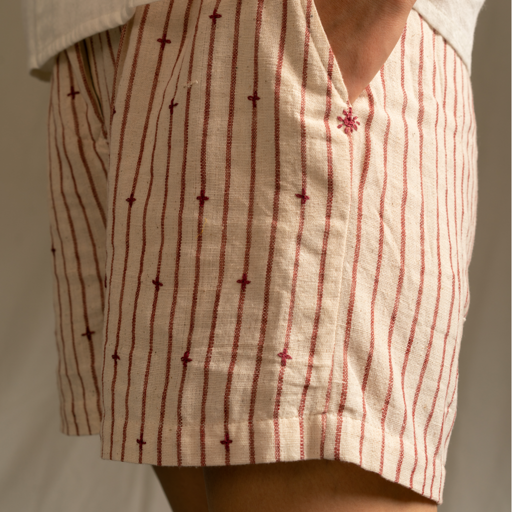 The Lehar shorts are made from hand-spun, handwoven, and naturally dyed cotton, crafted by skilled weavers and stitched by women artisans in Sittlingi. The soft, breathable fabric carries subtle irregularities that celebrate handmade beauty. Comfortable, classic, and consciously made, Lehar pairs simplicity with soul.